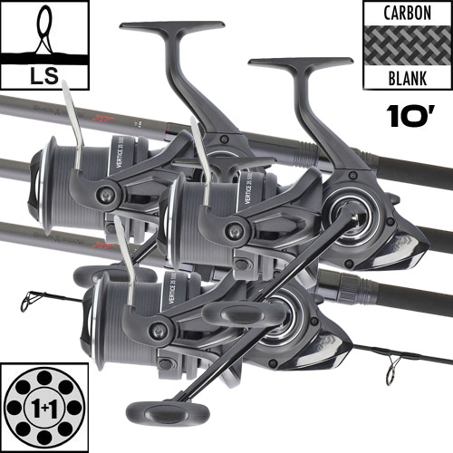 Les deux modèles sont équipés du moulinet Vertice Carp 5000 LD, léger et compact.