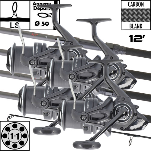 Les deux modèles sont équipés du moulinet Vertice Carp 5000 LD, léger et compact.